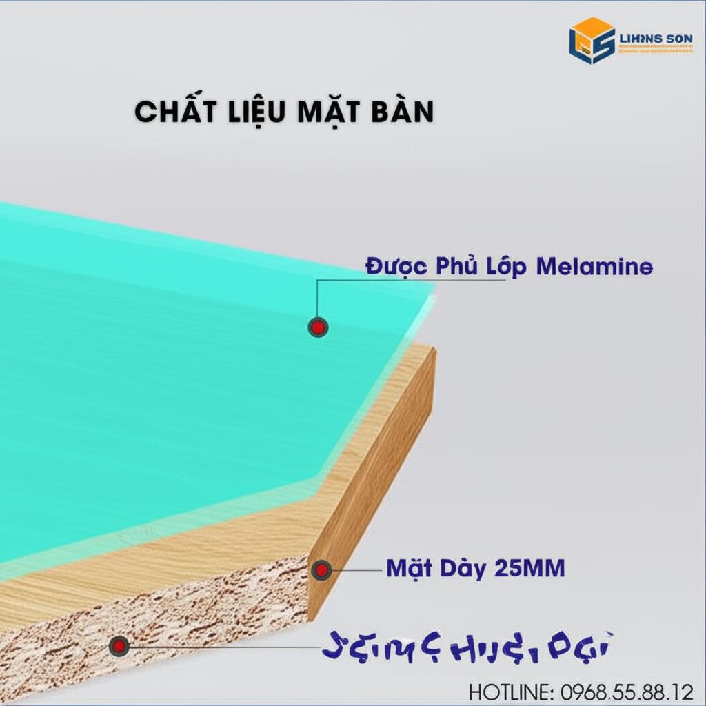 Làm từ gỗ công nghiệp MDF phủ Melamine cao cấp, BGD57 không chỉ đẹp – mà còn “bền như thép”. Chống trầy xước, chống thấm nước, chống cong vênh và mối mọt – bạn hoàn toàn yên tâm sử dụng trong mọi điều kiện văn phòng. Bề mặt nhẵn mịn, lau chùi một cái là sạch bóng – tiết kiệm thời gian, nâng cao hiệu suất.