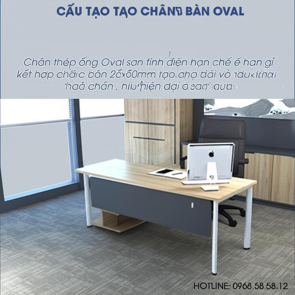 Kích thước 1800 x 900 x 750mm – vừa đủ rộng để bạn trải nghiệm không gian làm việc “full bộ”: laptop, tài liệu, điện thoại, ly cà phê sáng – tất cả đều có vị trí hoàn hảo. Đặc biệt, thiết kế Oval giúp tối ưu hóa giao tiếp – lý tưởng cho những cuộc họp nhỏ, trao đổi nhanh với cộng sự ngay tại bàn làm việc.