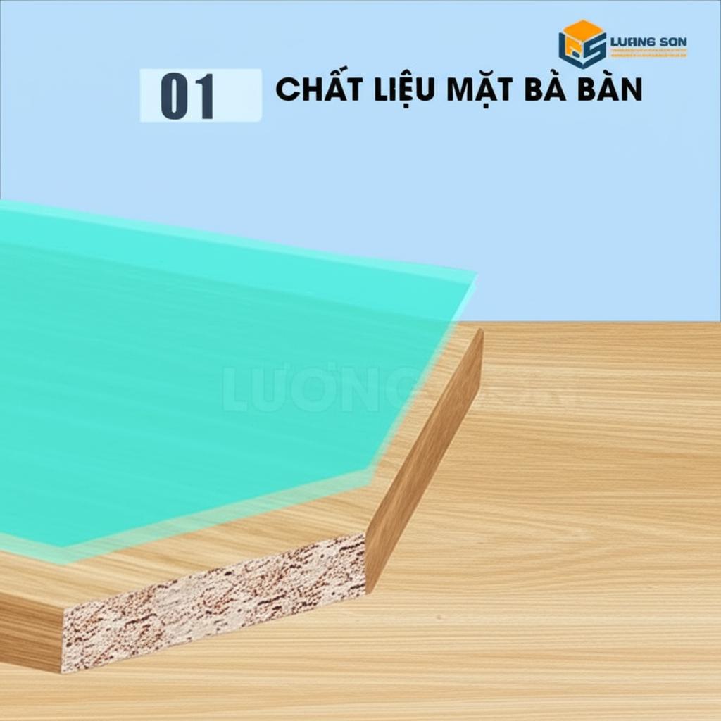 - Mặt bàn gỗ công nghiệp cao cấp: Bề mặt chống trầy xước, chống thấm nước, lau chùi cực dễ dàng – lý tưởng cho môi trường làm việc bận rộn.