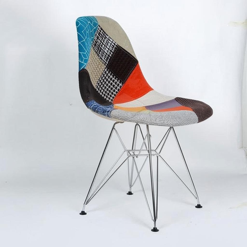 Ghế Eames thổ cẩm chân sắt đan J6M