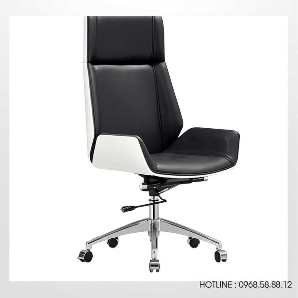 Sự kết hợp tinh tế giữa trắng tinh khôi và đen quyền lực tạo nên điểm nhấn mạnh mẽ cho không gian phòng giám đốc. Không chỉ là ghế – đây là tuyên ngôn phong cách của người lãnh đạo: tinh tế, vững vàng và đầy cảm hứng.